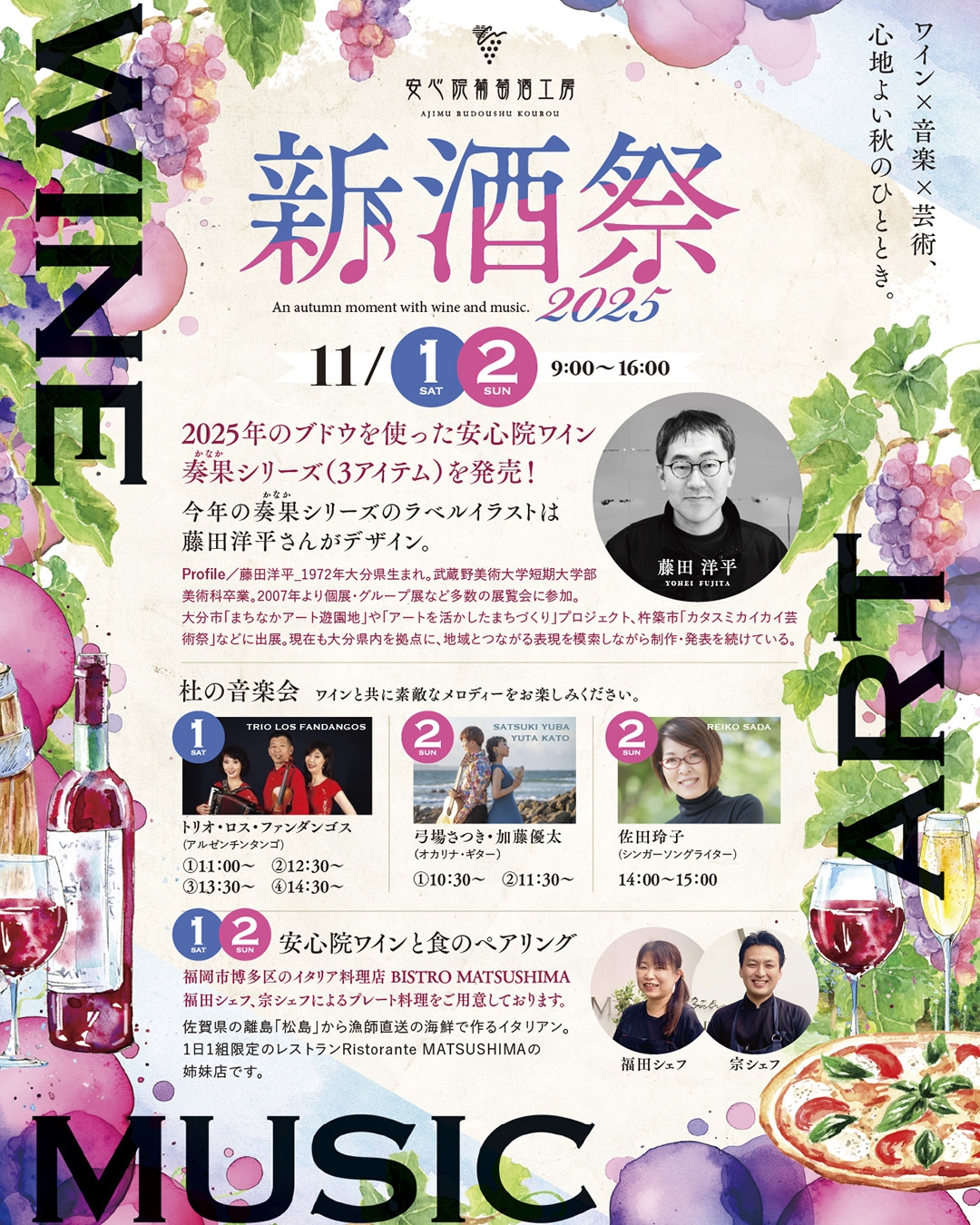 2025年11月1日(土)・2日(日)、安心院葡萄酒工房にて『2025新酒祭』を開催いたします。