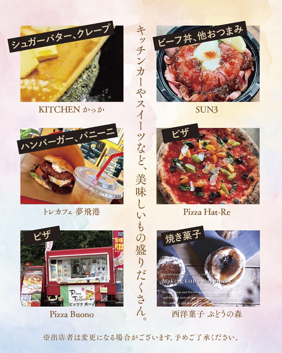 スイーツやキッチンカーも出店します。
